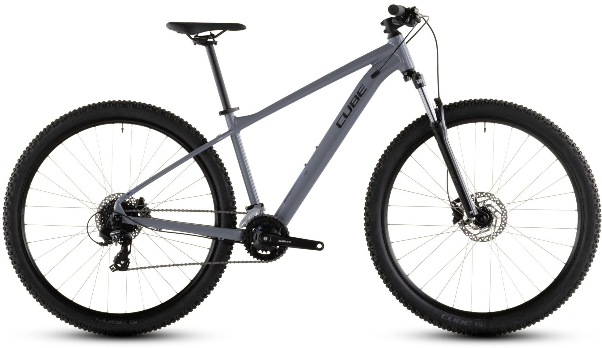 CUBE Aim One je odlična izbira za rekreativne kolesarje in začetnike v svetu gorskega kolesarjenja. Njegov lahek aluminijast okvir z elegantnimi Smooth Welded spoji in notranjim vodenjem kablov zagotavlja sodoben videz ter dolgo življenjsko dobo.